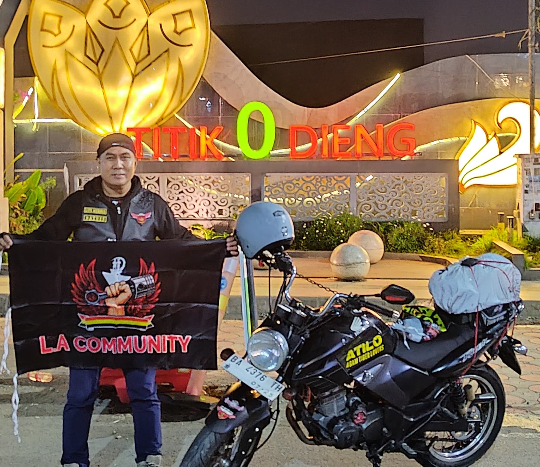 Dengan semangat kebersamaan lintas komunitas, Joni bersama para rider lainnya sukses mengibarkan Pataka LA Community di Titik Nol Dieng, puncak dataran tertinggi di pegunungan Dieng, Jawa Timur, Rabu (8/10) dini hari.